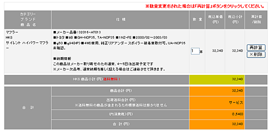 | 現在のお見積もりが表示されます。数量、金額、送料をご確認ください。 商品によっては車種、車両型式、エンジン型式、年式により適応しない場合があります。ご希望の車種用であるか必ずご確認ください。 |