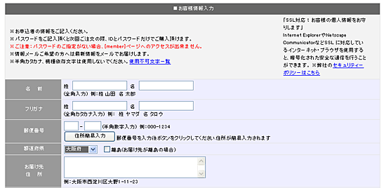| 記入例に従い「お客様情報」をご記入ください。 2回目以上の方は自動的に「お客様情報」が入力されます。 必ず記入項目をご確認ください。変更がある場合はその項目を変更してください。 |